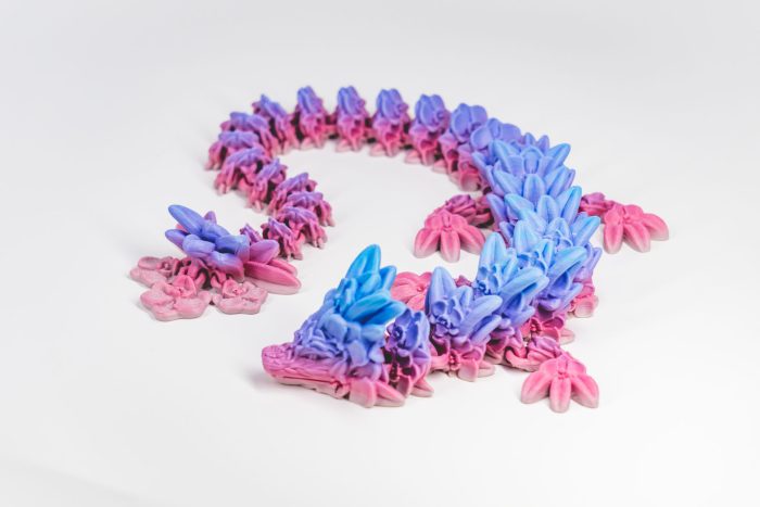 Check out this beautiful mid-size rainbow dragon featuring cherry blossom scales!