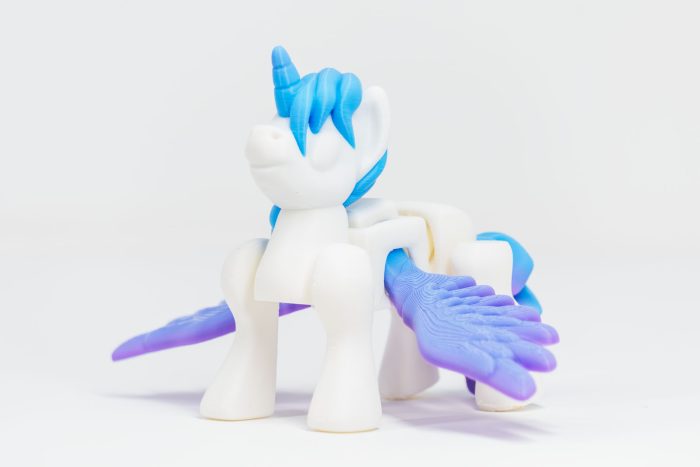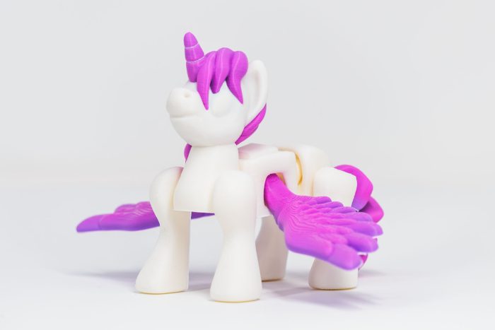 Flexi unicorn with push button on back to flap the wings. Includes a flexi tail and articulating limbs!