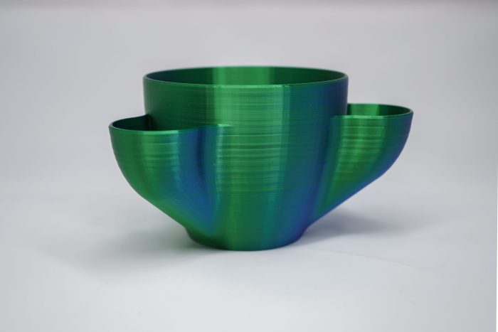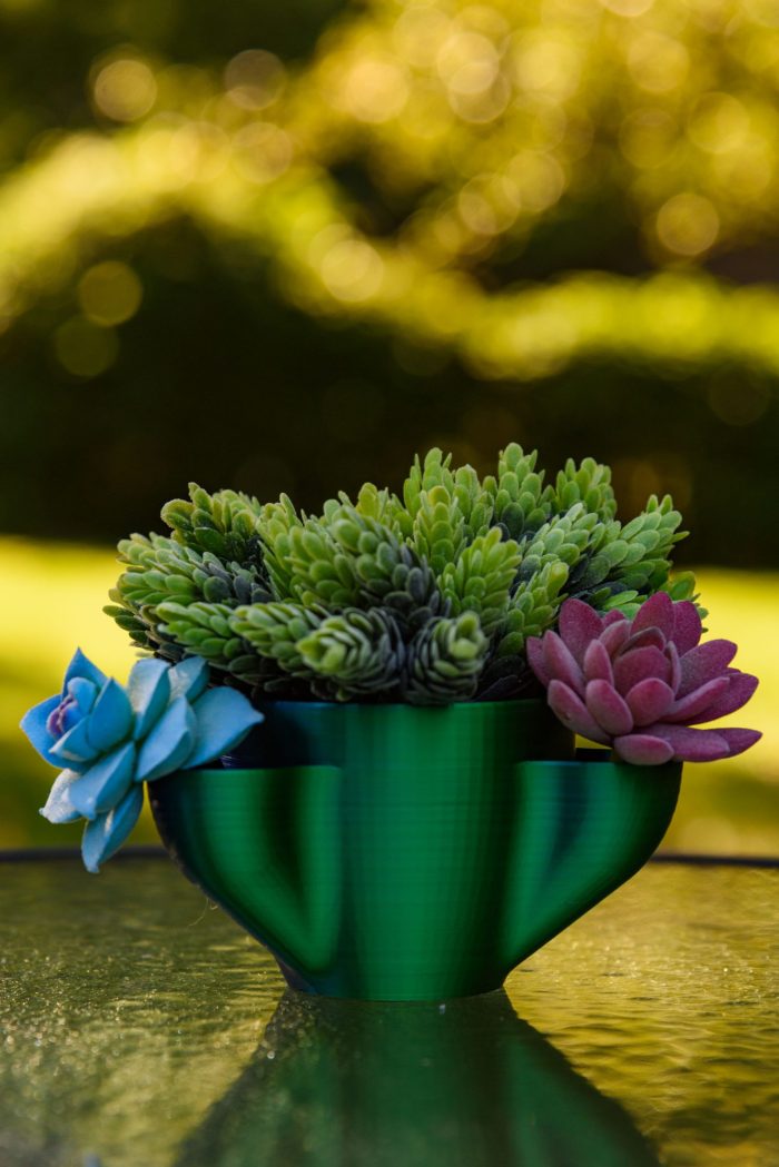 A three-way succulent plant holder with connected drains